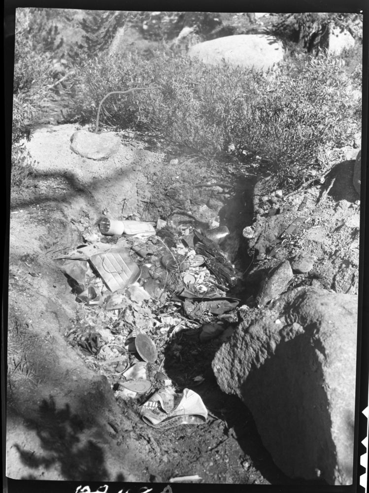 Backcountry cleanup, camping, Sierra Club garbage pit during use, compare with 08007. Sierra Club Backcountry Trips.