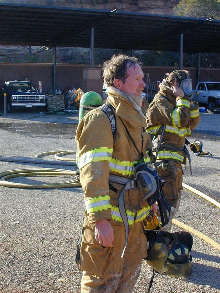 Firefighter crew photos during structural fire training at Mesa Verde National Park, 2001