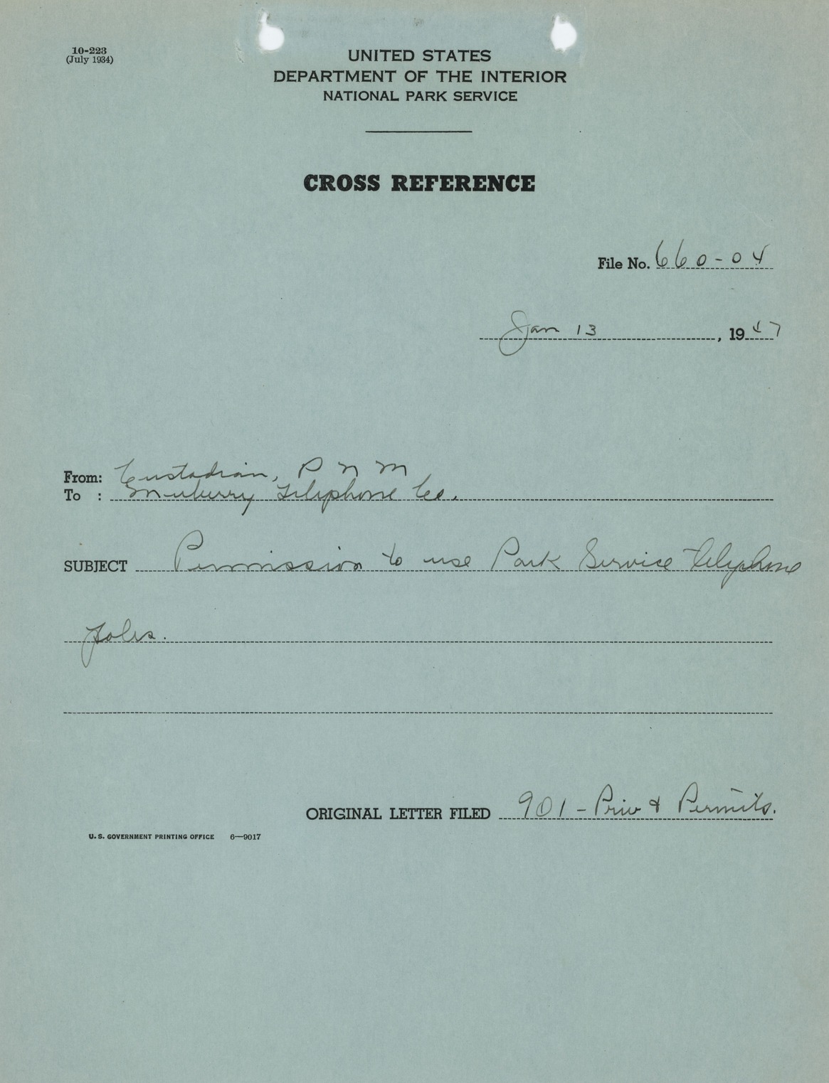 Original ID Telephone, Telegraph and Radio Service: Telephone Correspondence 1940-1953., 8.5 x 11 inches