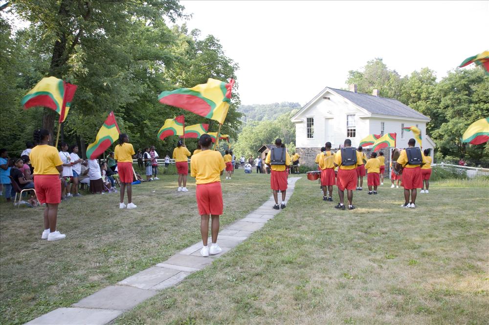 Cuyahoga Valley National Park (CVNP) and Cuyahoga Valley National Park Association present Get Up, Get Out & Go!, a campaign introducing recreational opportunities along the Ohio & Erie Canal Towpath Trail in Akron and the national park. The program targets residents in the urban neighborhoods surrounding the Towpath Trail in Akron which is a part of the larger Ohio & Erie Canalway, a national heritage area. Get Up, Get Out & Go! serves as an invitation for kids 11 to 14 years old and their families to give the Towpath Trail a try and to venture further along the trail into CVNP. || Visitors listen to an Akron youth marching band at the Get Up, Get Out, Go! kickoff event in June 2007.
