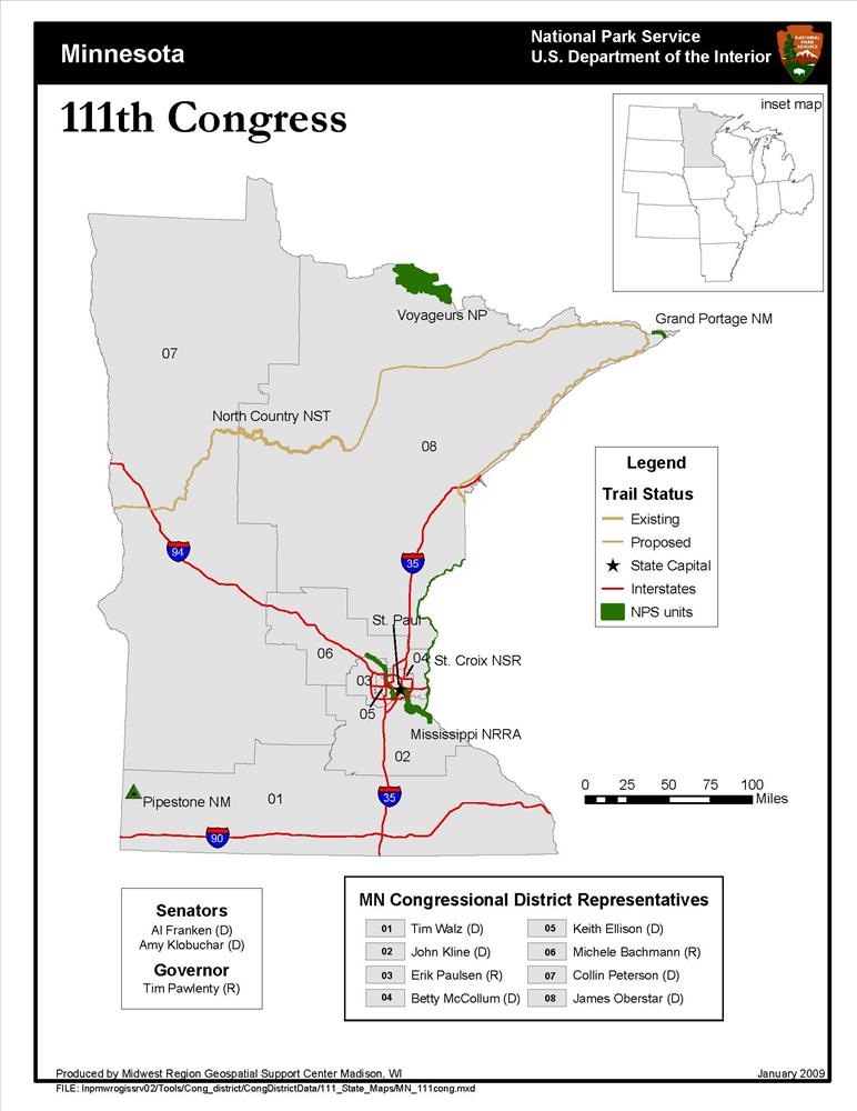 This set of maps displays the congressional districts for states located within the Midwest Region (AR, IA, IL, IN, KS, MI, MN, MO, ND, NE, OH, SD, WI). The maps provide district boundaries, as well as the state's senators, representatives, and governor.