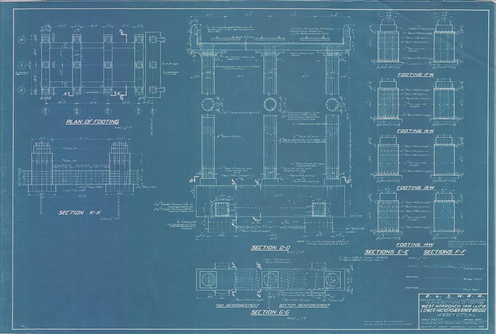 037 Lower Hackensack River Bridge--Plan and sections of footing--West approach 14W to 17W--Jersey City, NJ [1928.01.09] Sheet no. 37