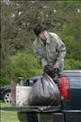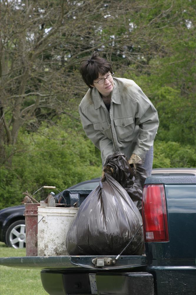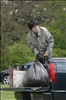 RiverDay is an an annual day of service and celebration in the Cuyahoga Watershed. Activities are coordinated by Friends of the Crooked River. Cuyahoga Valley National Park is a partner. Our volunteers remove trash from dump sites in several locations and invasive plants from the area around Howe Meadow. || NPS staff and volunteers load garbage and bagged invasive plants into dumpster on RiverDay.