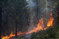 Sunset prescribed burn in Grant Grove, Sequoia and Kings Canyon National Parks, fall 2002