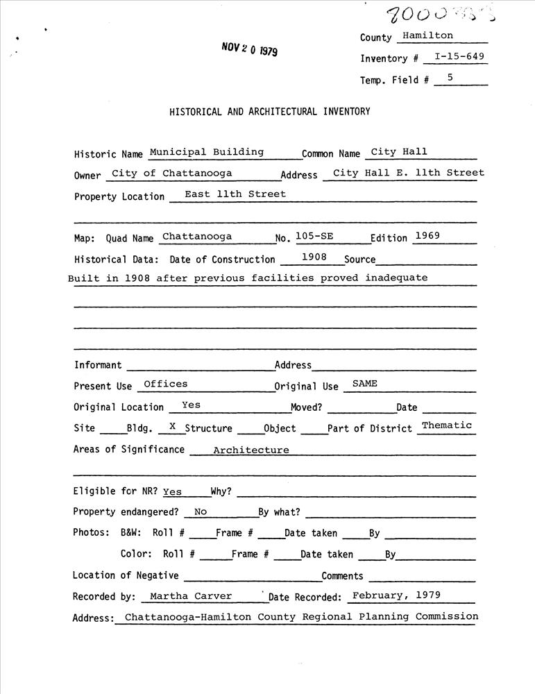 Hunt, Reuben H., Buildings in Hamilton County TR