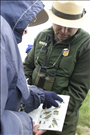 Cuyahoga Valley National Park is designated an Important Bird Area by the Audubon Society of Ohio, in part because of the restored grasslands at the site of the former Richfield Coliseum. A property once known for its sports/concert arena is now managed by the National Park Service as a grassland for rare birds. Cuyahoga Valley National Park offers year-round programs on bird watching. || Visitors bird watch with Park Ranger Paul Motts at an interpretive program called After the Coliseum in 2006. The program was an opportunity for local residents to learn how the park intends to manage this newly restored property.