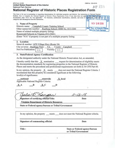 Rosenwald Schools in Virginia Multiple Property Submission
