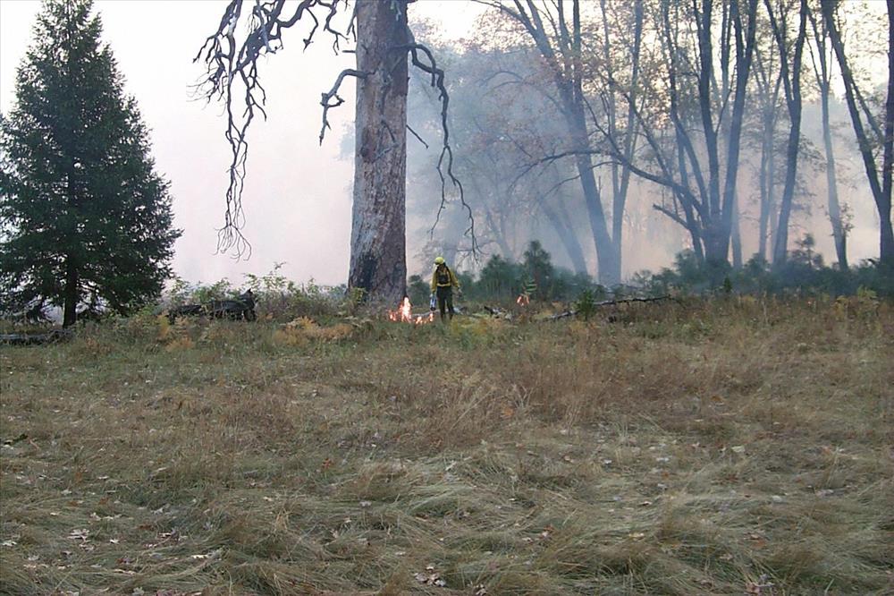 Crews using drip torches to ignite El Capitan prescribed burn, 2000, Yosemite National Park