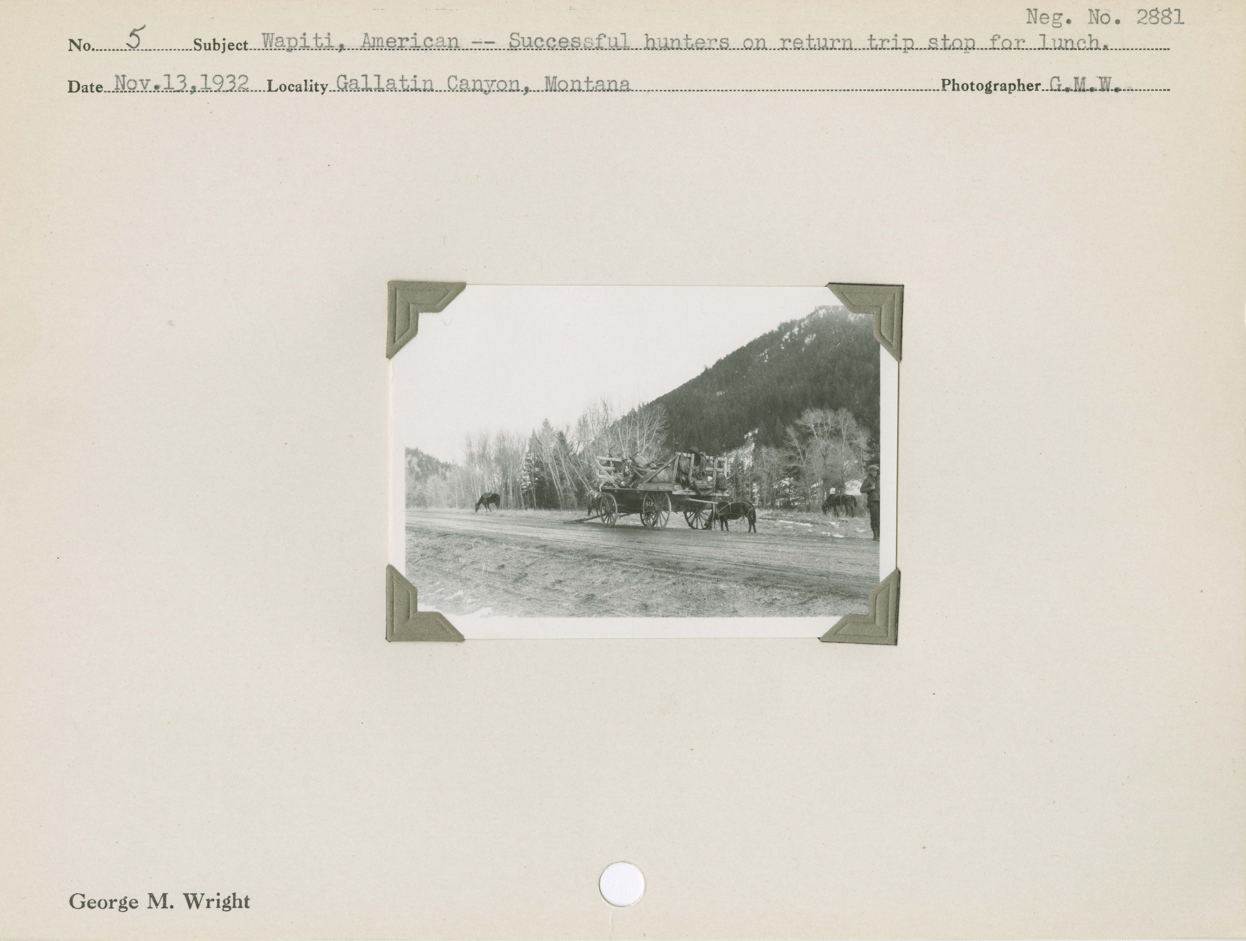 Wapiti, American [Elk] – Successful hunters on a return trip stop for lunch. Negative #: 2881. Locality: Gallatin Canyon, Montana.