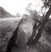 Shovel leaning against rock retaining wall alongside road at the tunnel during rebuilding. ; ZION Museum and Archives Image 002.02.01-8of16 ; ZION 15933
