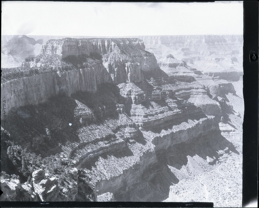 Nitrate negative of canyon walls from the rim at GRCA. ; BRCA Museum and Archives Image BRCA8875_001_490 ; BRCA 8875
