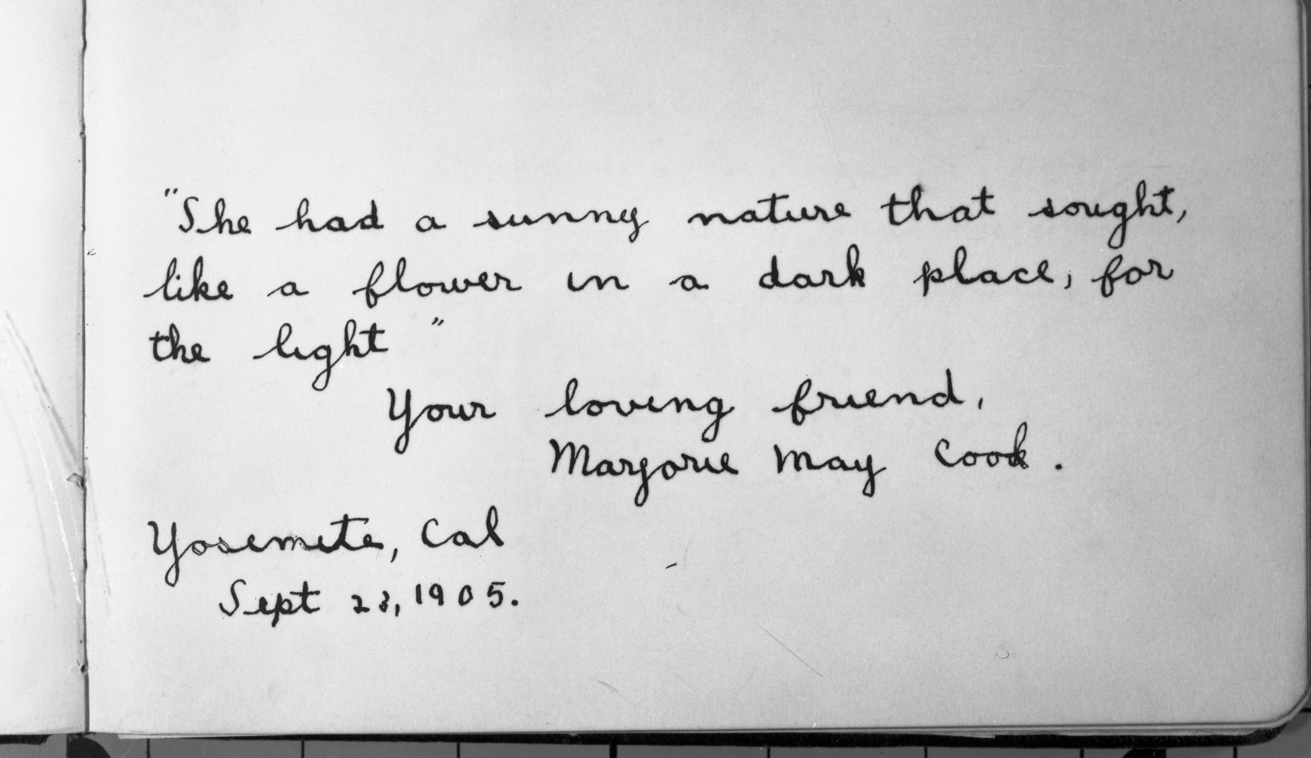 Autograph of Marjorie May Cook in autograph book of Nellie and Dorothy Atkinson. Copied courtesy Bonnie Douthit. Copied October 1980 by Michael Dixon.