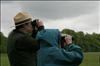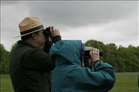 Cuyahoga Valley National Park is designated an Important Bird Area by the Audubon Society of Ohio, in part because of the restored grasslands at the site of the former Richfield Coliseum. A property once known for its sports/concert arena is now managed by the National Park Service as a grassland for rare birds. Cuyahoga Valley National Park offers year-round programs on bird watching. || Visitors bird watch with Park Ranger Paul Motts at an interpretive program called After the Coliseum in 2006. The program was an opportunity for local residents to learn how the park intends to manage this newly restored property.
