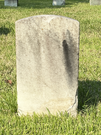Back of historic upright marble headstone with recessed shield face.