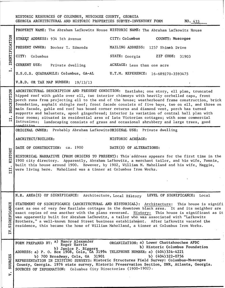 Columbus ; 934 5th Ave.