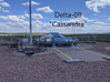 Gravel area with several hatches on a cement pad with a glass dome in the center and a white pole sticking up. Words "Delta-09 Cassandra"