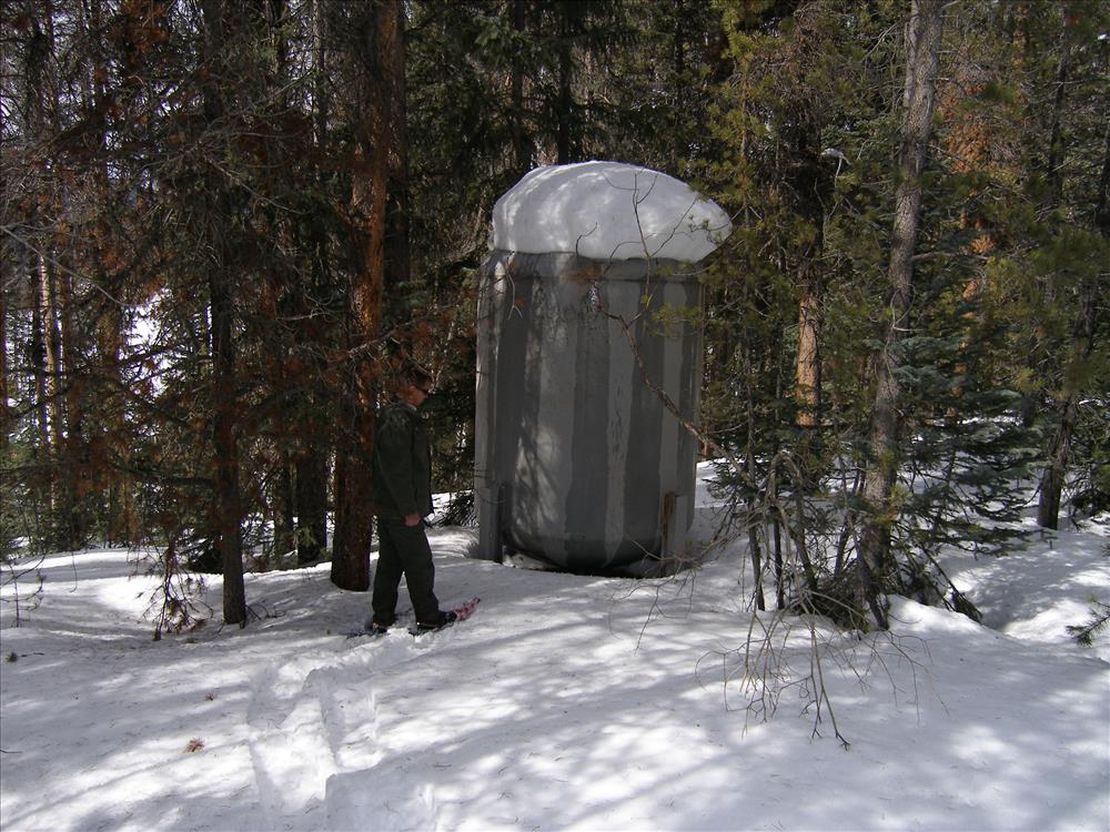 Green Mountain water tank due for replacement at Rocky Mountain National Park , 2009. Water tank has outlived its service life.