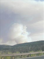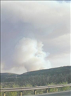 Heavy white and dark smoke in distance views of the Long Mesa Fire at Mesa Verde National Park, July-August 2002