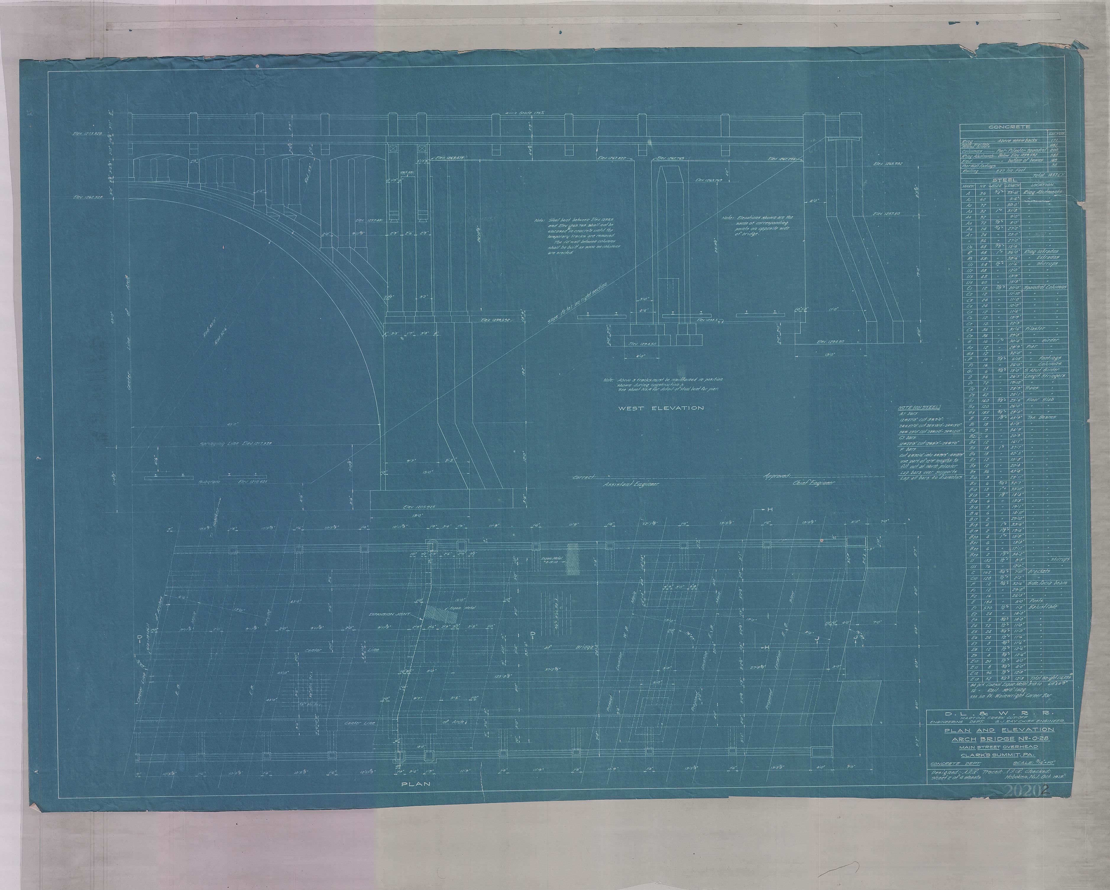 Main Street overhead arch bridge no. 0.28--Plan and elevation--Clarks Summit, PA [1913.10] Sheet no. 2 of 4