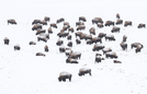 Bison grazing in snow covered Hayden Valley;