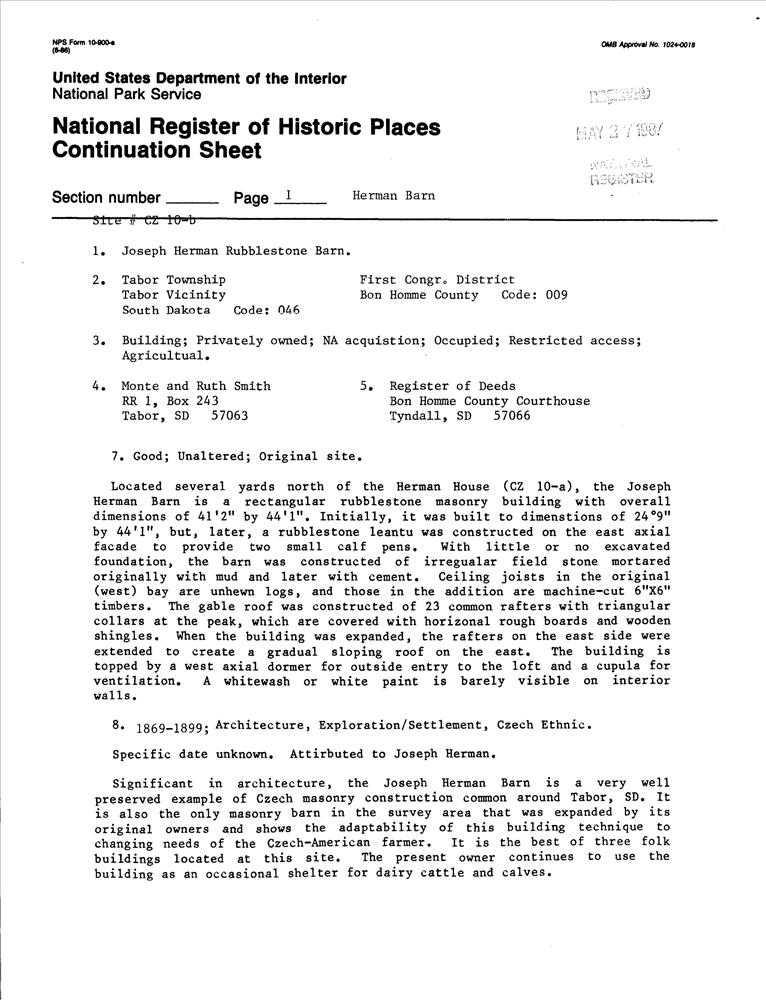 Czech Folk Architecture in Southeastern South Dakota MRA