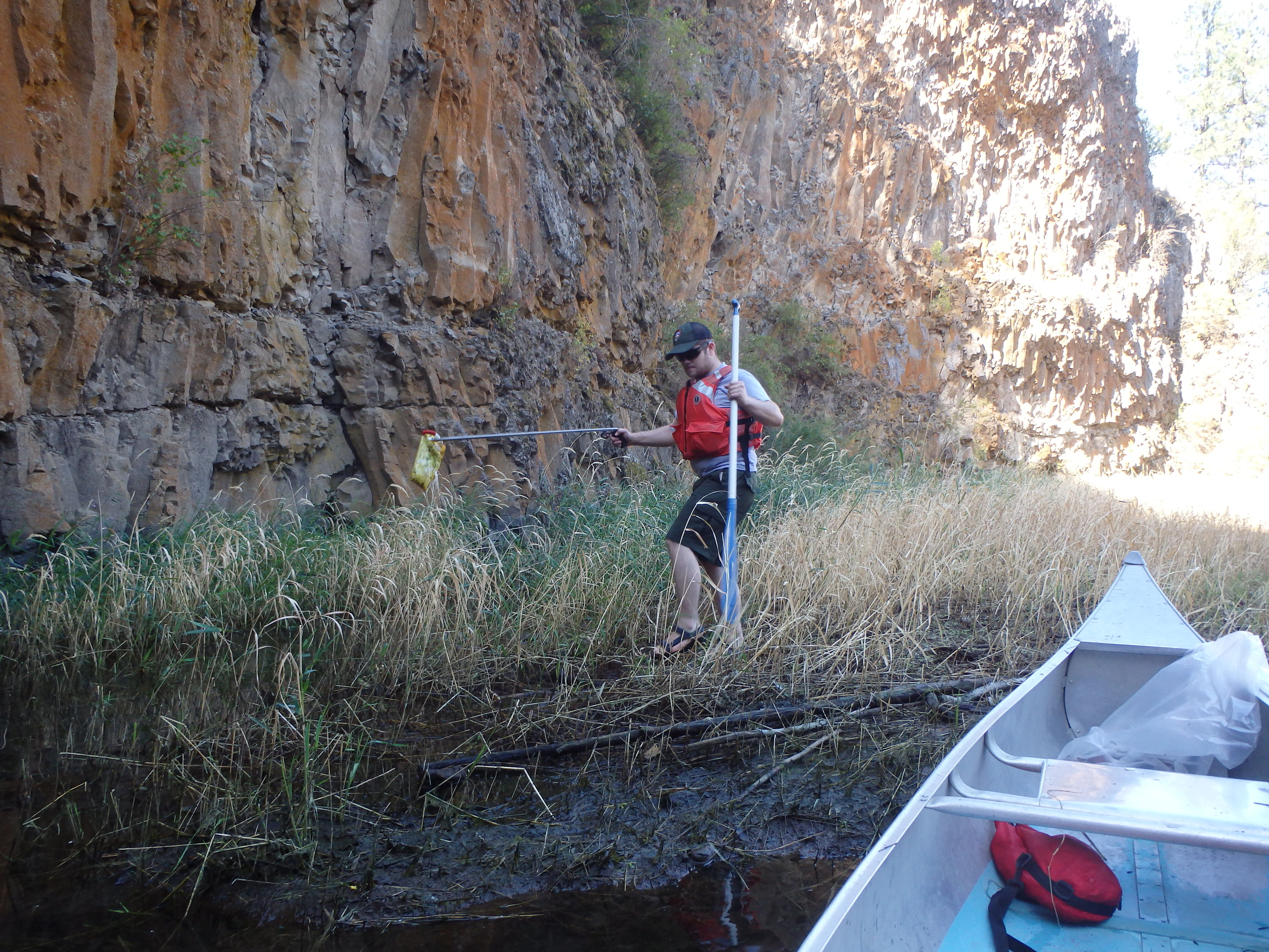 A ranger picks up trash at Hawk Creek