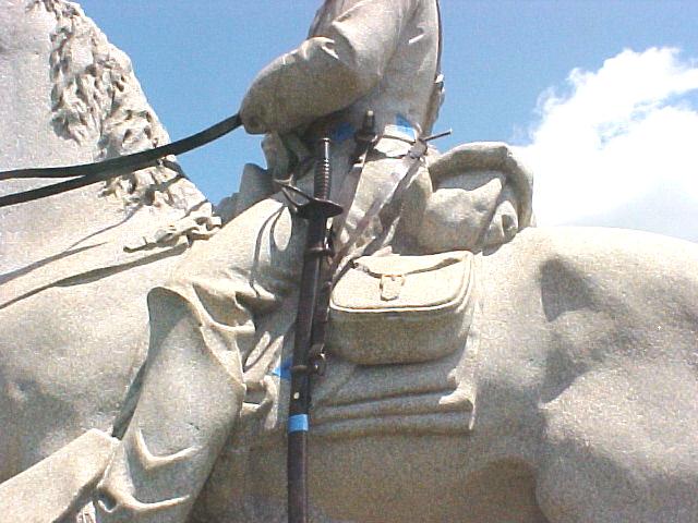 8th Pennsylvania Cavalry Monument, this granite and bronze monument, located on Pleasonton Avenue, Gettysburg National Military Park, was vandalized in 2006. A bronze saber was removed and not recovered. This missing detail detracted from the overall appearance of the monument. Another bronze saber was cast, and installed by GNMP Monument Branch personnel in June, 2007. The monument is now complete, and exhibits an enhanced appearance to Park visitors.