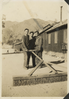 Sweeping the dirt at Camp Pinnacles.