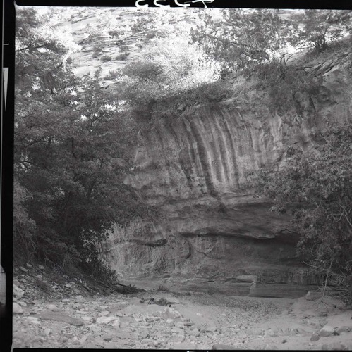 Site of motorcycle accident above small tunnel. ; ZION Museum and Archives Image 107_05_056 ; ZION 14807