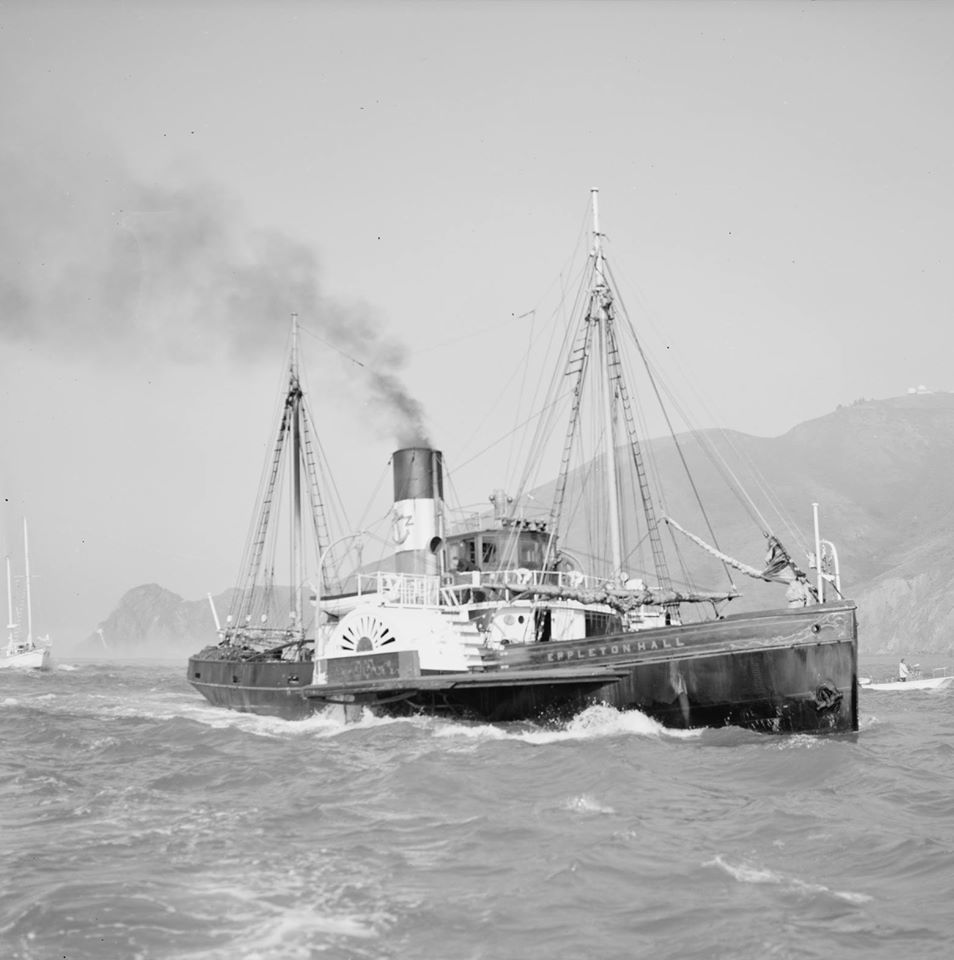 Eppleton Hall arriving in San Francisco, San Francisco Maritime National Historical Park, 1970.