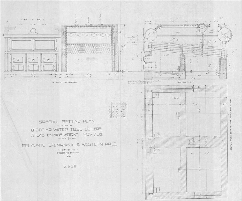 001 Special setting plan--Eight 3,000 horsepower boilers-- Atlas Engine Works [1906.11.07]