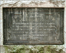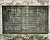 The rough-hewn base measures 7'4" x 4'2" and supports a block that is rough-hewn on 3 sides for a total height of 5'6". The smooth front bears an inscription, the rear a bronze plaque. The top angled section reads "ILLINOIS" in raised letters.