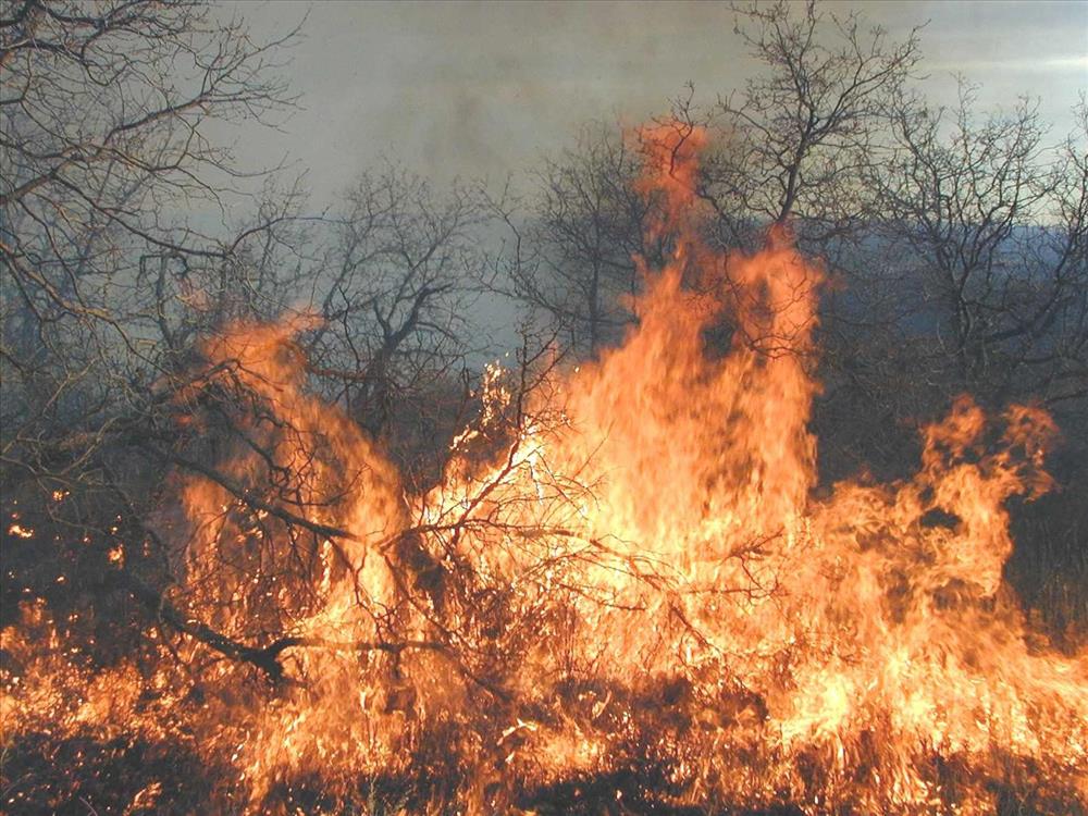 High intensity flames in dense brush during Far View prescribed fire, November 2001