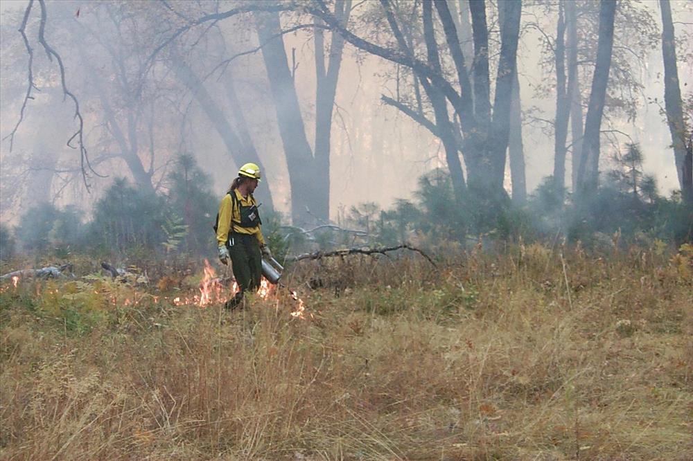Crews using drip torches to ignite El Capitan prescribed burn, 2000, Yosemite National Park