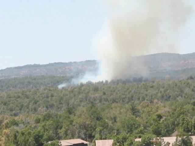 Photos of white smoke indicating start of the fire on the first day of Long Mesa Fire, Mesa Verde National Park, July 29, 2002