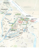 The map illustrates the Kirk Street Agents' House and the Boott Mill in relation to other park facilities and the City of Lowell as a whole.