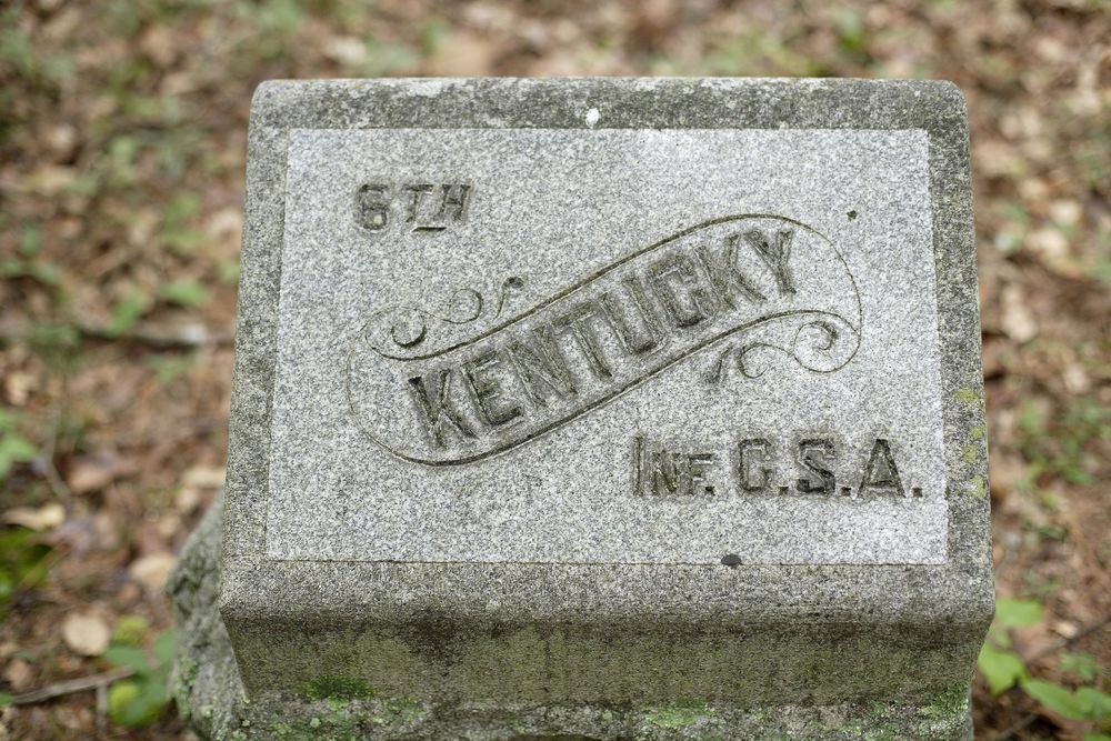 Marker contributes to national significance of park under NR Criterion A because it represents the national movement among veterans & related groups to commemorate Civil War battlefields. || 1'8" x 1'2" x 3'2" high, marker is a single block of granite, rock-faced at bottom and finished above, with a slanting top inscribed with "Kentucky" within a scroll and the unit's name.