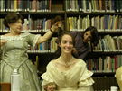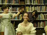 Images of the Winter Celebration event held at Lindenwald on December 4th, 2009 in celebration of Martin Van Buren's birthday (Dec. 5), showing setup of decorations by the Kinderhook Garden Club, preparation of the costumed actors, and the event itself, including scenes of the outdoor tent and campfire as well as the mansion interior lit by artificial candlelight.