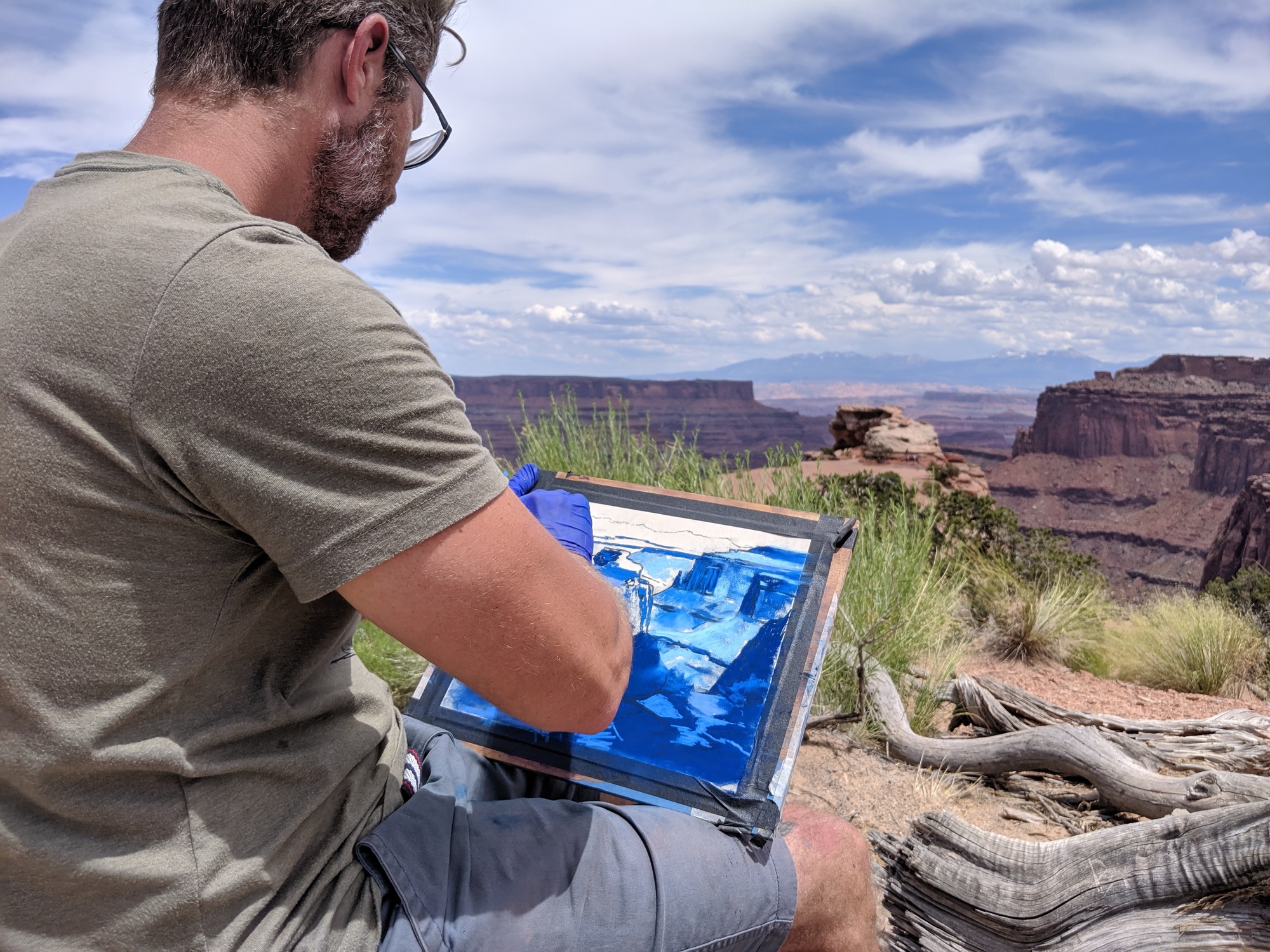 Community Artist in the Parks Antonio Savarese works at Island in the Sky in Canyonlands National Park.