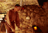 NPS employee rolling glass in Jamestown in Colonial National Historical Park.