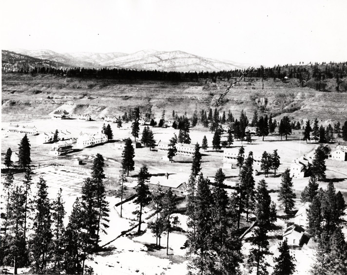 "Overall view of Fort Spokane, Agency Period" in winter. Undated - perhaps c. 1905.