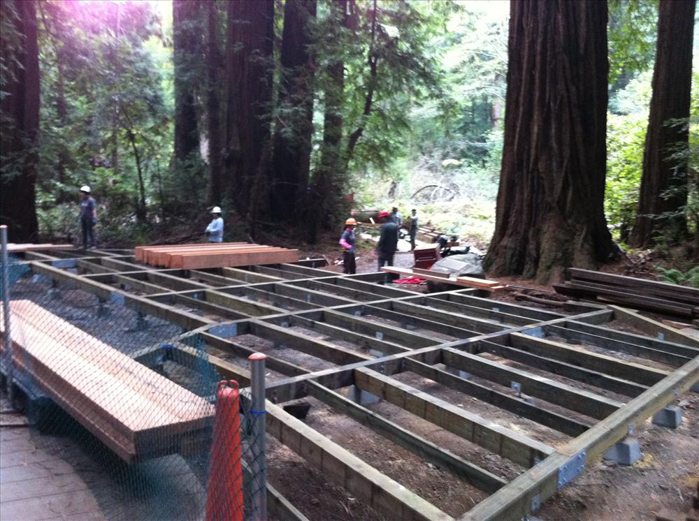 This project will rehabilitate and upgrade key sections of the Muir Woods Main Trail and Ocean View Trails, located within Muir Woods National Monument (MUWO). Work on the Muir Woods Main Trail will involve replacing existing approximately 2,600 square feet of asphalt tread surfaces in and around the Pinchot Tree interpretive pullout site with an outdoor accessible elevated boardwalk and associated site furnishings to meet current accessible guidelines.