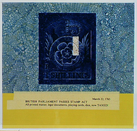 Facsimile of a 1765-1766 tax stamp intended for use in the American Colonies as required by the British Stamp Act.