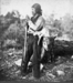 Copy Neg: July 1985 by Michael Dixon. Detail from L. Smaus stereo (RL-16,579). Caption: "595. Digger Indian Hunter." Captain John, a Nisenan chief (Southern Maidu group). Reproduced in: Powers, Tribes of California, 1877.