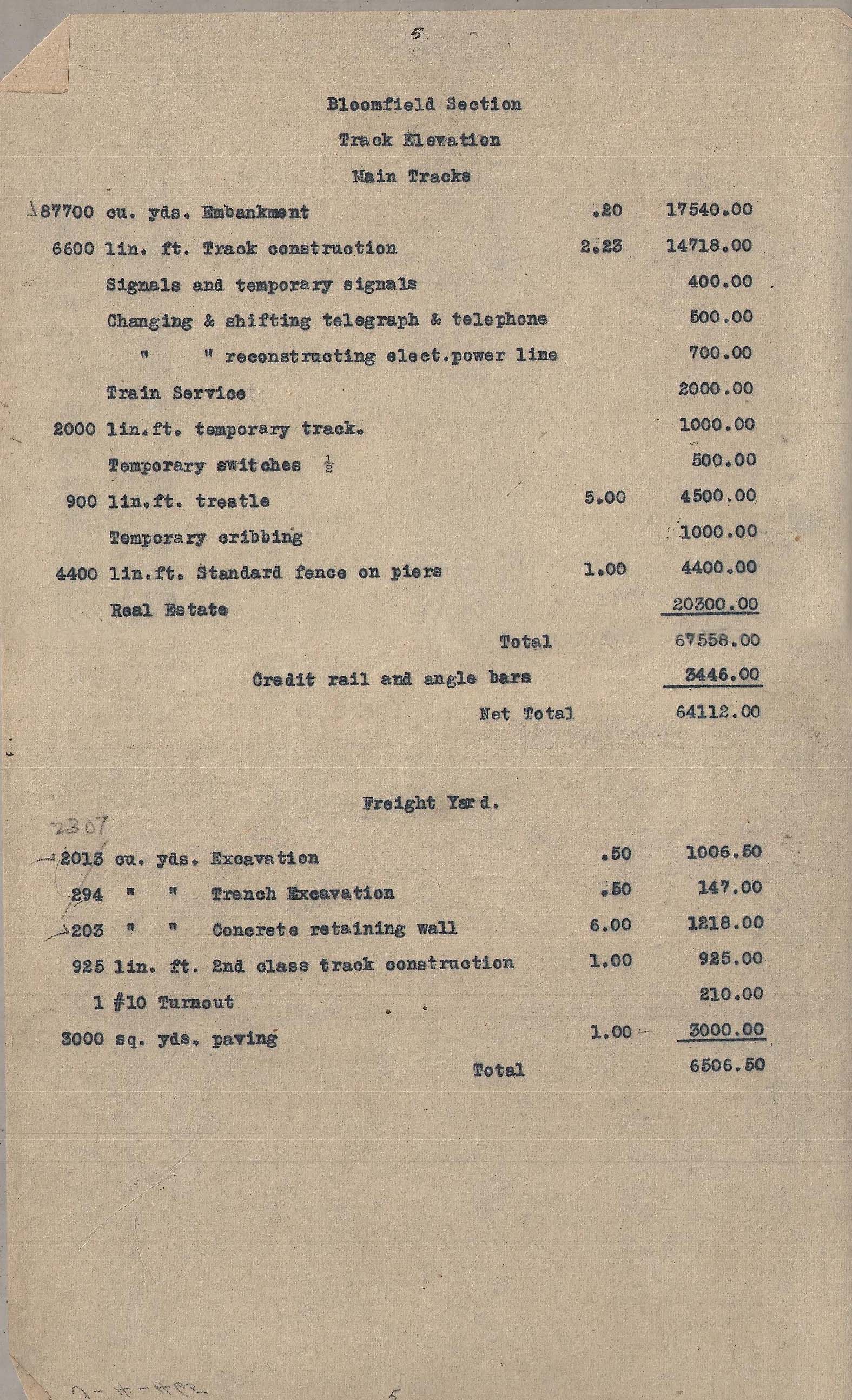 50990.PB#001--Approximate estimate of cost of eliminating grade crossings through Bloomfield including Watsessing [1910.05]