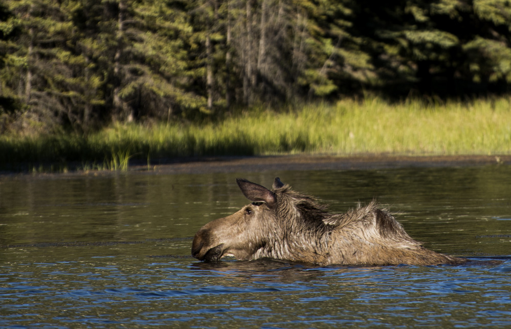 A moose cow swimming in Horseshoe Lake