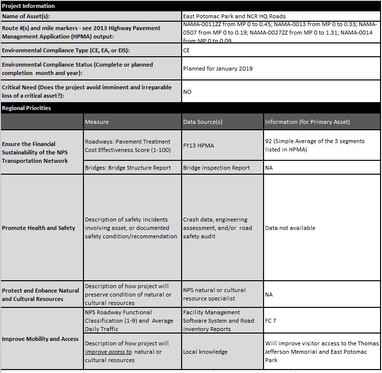 NAMA HPMA Project Tables for Prioritization