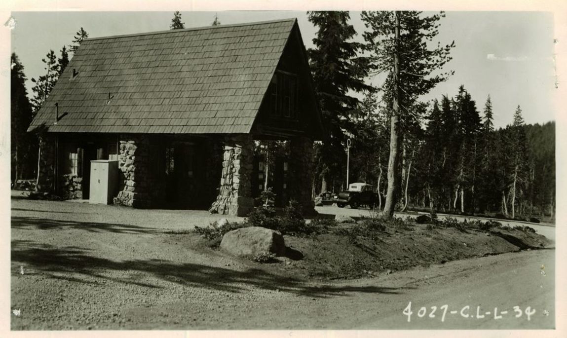 Filling Station, operated by Standard Oil of Calif. located across from present concessioner gas station in Crater Lake NP, circa 1934