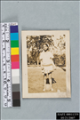STORER COLLEGE STUDENT, EVELYN HARVEY TAKEN IN 1934 ON STORER COLLEGE CAMPUS. MISS HARVEY IS DRESSED IN A BASKETBALL UNIFORM CONSISTING EITHER OF A SHORT SKIRT OR SHORTS AND A SHORT SLEEVE, V-NECK JERSEY. SHE IS HOLDING A TRIANGULAR SHAPED PENNANT WITH THE LETTERS "S C" IN HER HANDS. THE PENNANT HAS A MEDIUM COLOR BACKGROUND WITH WHITE LETTERS AND WHITE TRIM ON THE STRAIGHT END AND FASTENED TO A STAFF ON THE STRAIGHT END. SEE CAT. #S, 11398,11400,11401.'