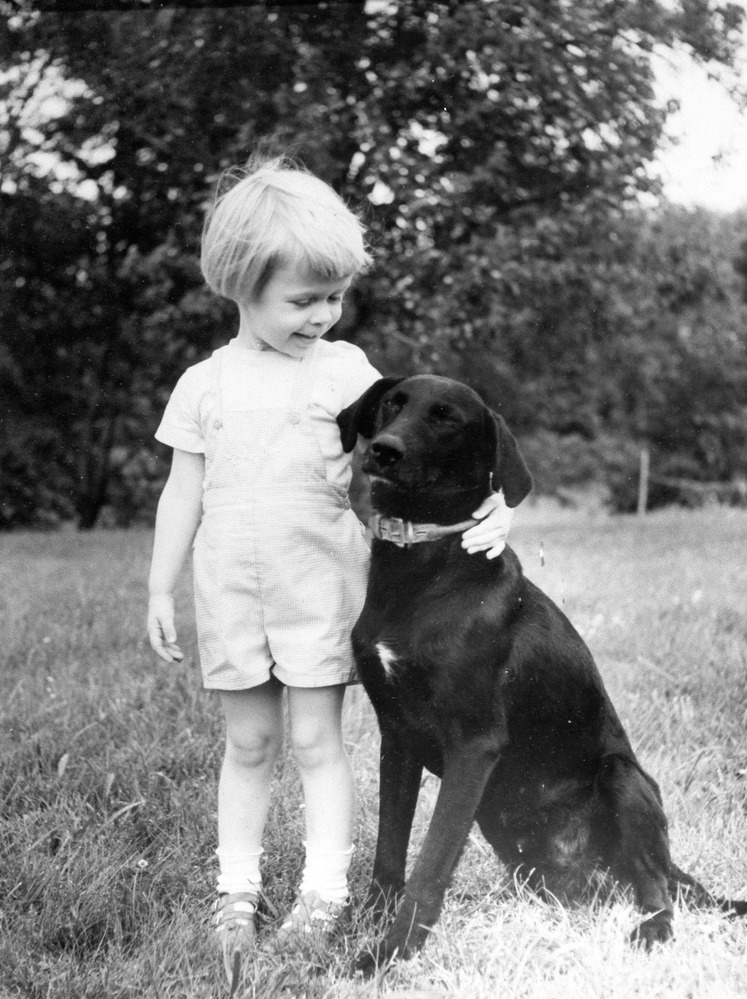 Anna Eleanor "Nell" Seagraves with the the family dog, Peppy. Nell, pictured here at age 2, is the daughter of Eleanor and Van Seagraves. This photograph was taken at the Seagraves' home in Le Roy, New York.